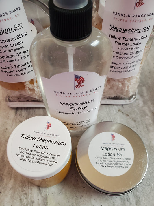 Magnesium Set Spray, Tumeric Black Pepper Lotion Bar and Tallow Black Pepper Tumeric Lotion